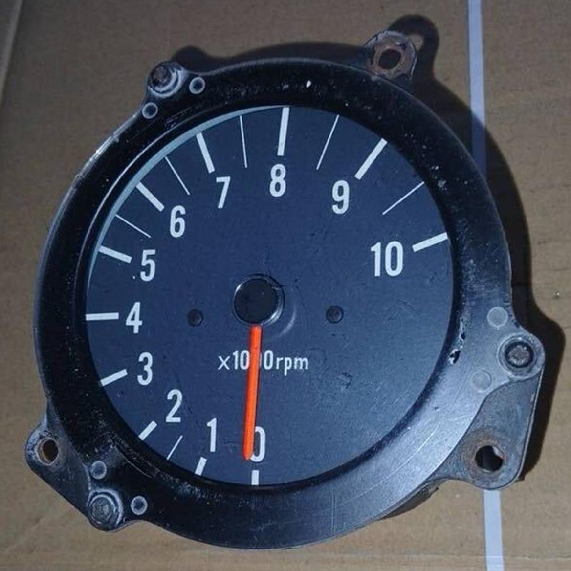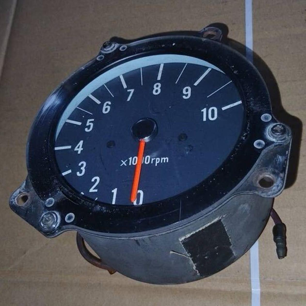 This one has no tell-tale pointer, does not say KANTOSEIKI TOKYO, and the legend (x 1000rpm) is below the pointer instead of SE to the pointer. It also has tape where the dash bracket would normally be